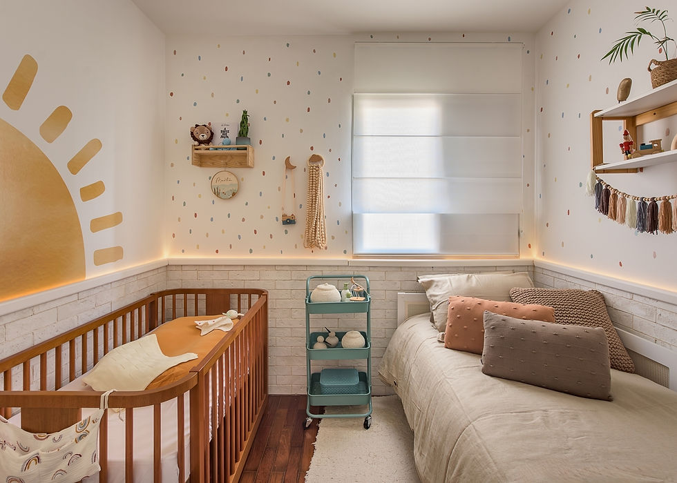 Os clientes são apaixonados pelo mar, e a mãe, que já morou em Caraíva, desejava trazer um pouco desse universo para o quarto do bebê. A ideia foi criar um ambiente aconchegante e sereno, inspirado na praia. O uso de tijolinhos brancos da Colormix, iluminação indireta e tons suaves garantiram um espaço acolhedor para os momentos em família.